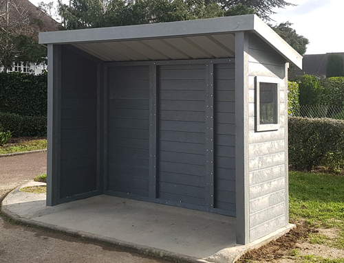 Les abris bus en plastique recyclé sont idéals dans les environnements exigeants, que ce soit en bord de mer ou dans des zones humides. Proposés d’origine avec un hublot sur un côté, il est possible d’en ajouter en option.