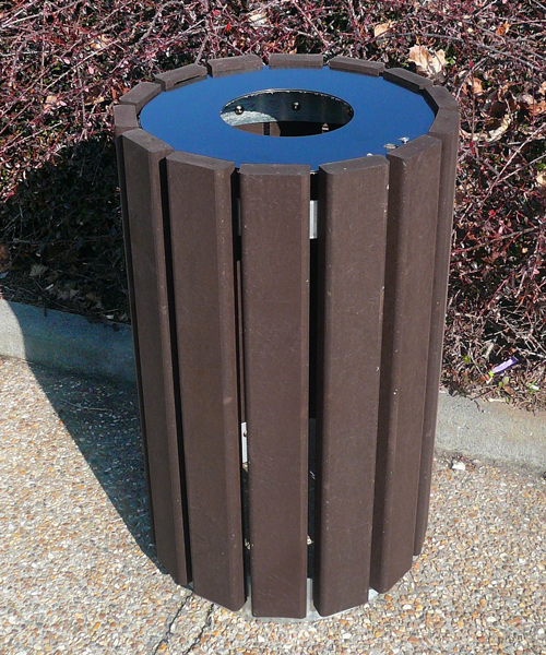 Une corbeille de ville ou de square polyvalente qui associe solidité et écologie. Avec porte-sac ou bac intérieur pour une contenance de 70 à 100 litres.