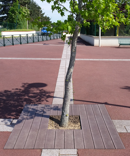 Habillez vos pieds d’arbre en plastique recyclé. Les pieds d’arbre en plastique recyclé permettent d’éviter le piétinement à la base de vos arbres. L’intervalle réduit entre les lattes permet aux pieds d’arbres de rester propres. Ils sont aussi recoupables. Un solution idéale pour respecter le végétal dans la villes.